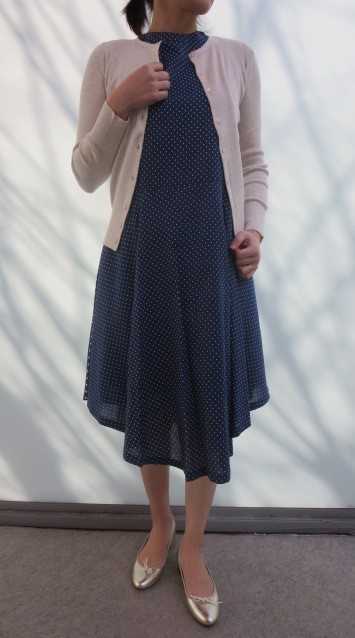 ・カーディガン(three dots) ¥14000+税 ・バレエシューズ(Harriss Grace) ¥24000+税