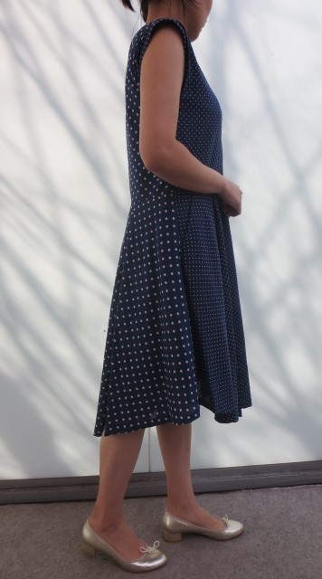MODEL:ドット柄ドレープワンピース