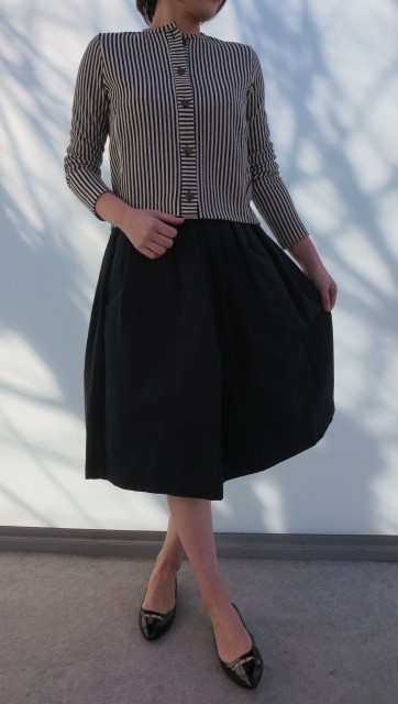 軽くて、さらりと羽織れそうな1枚仕立てのストライプ柄のジャケット。カーディガン感覚で気軽に使って頂けそうです。スカートやワンピースなどと合わせれば、キチンとした雰囲気に仕上がりますし、デニムやチノパンツなどと合わせてカジュアルに着こなしてもGOOD!
