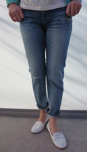 新型【KAY】は、入荷して以来とても人気のシルエット。ヒップや腰回りは、ボーイズライクに、けれども腰はスッキリ見せたいという方にピッタリなスリムボーイフレンド。【CECIL】に比べて、細めの膝下ラインとくるぶしが華奢に見える9分丈が、特徴です。この春夏に向けて、ポリエステル混の軽い素材感が、涼しげな履き心地。夏にお勧めな1本です。