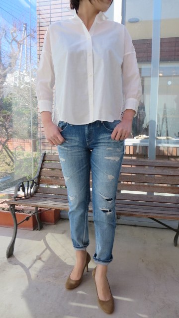 ・シャツ(heliopole) ¥19000+税 ・シューズ(Sarah Pinkman) ¥19000+税