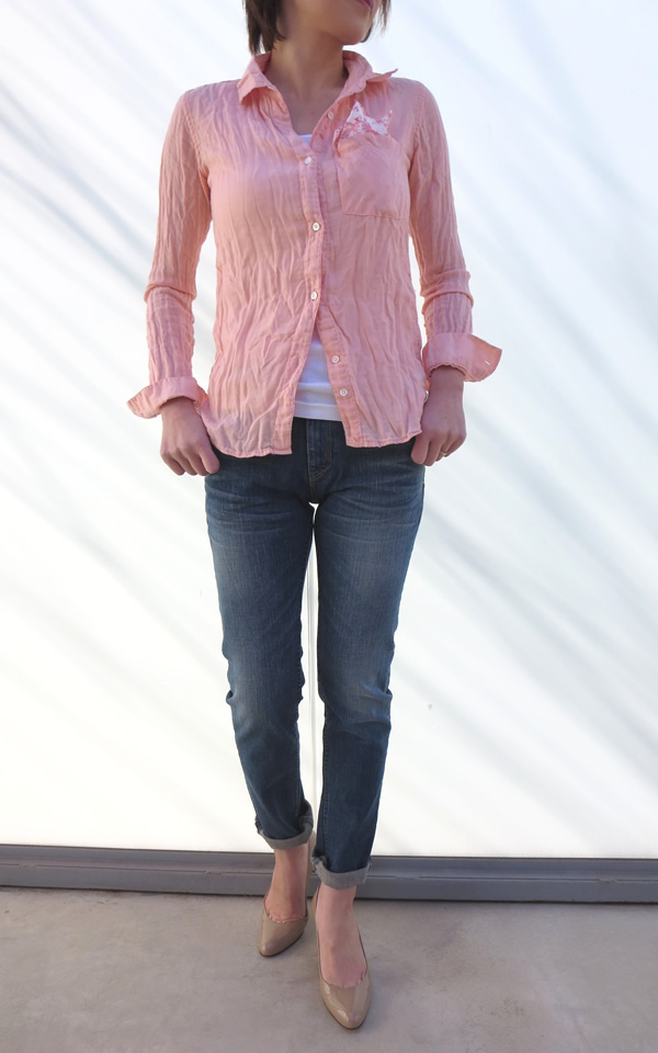 ・シャツ(delave) ¥14000+税 ・シューズ(Sarah Pinkman New York) ¥19000+税 ・ネックレス(Harriss Grace) ¥9500+税