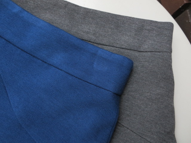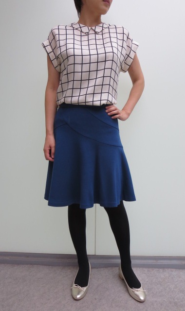 スカートもご紹介しますね!こちらは、"aqua fits"。フレアスカートですが、デザインが効いていてシルエットもキレイです。お仕事にも活躍出来そうな1枚。色は、ブルー、グレーの2色。
