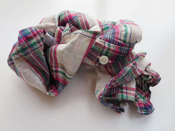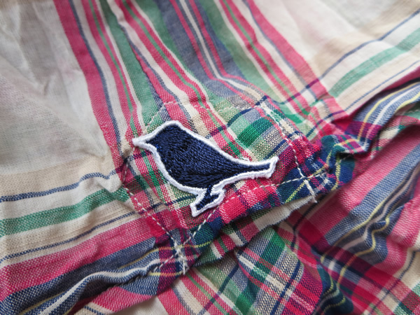 メーカーさんからは、こんなカンジにクルクルっと縛られてきました(写真左)。お家で洗濯する場合、このように縛って洗濯バサミで摘んで干すと、シワ加工がキレイに残ります。裾脇には、可愛い鳥の刺繍が付いています!まさに幸福の“青い鳥”・・・?
