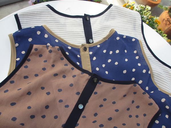 ブラウスは、メモリージョーゼット素材でシンプルなドットやボーダープリントを大人っぽくニュアンスのある表情を作り出しています。後ろボタンのデザインもGOOD! パンツは、オンでもオフでも使い易い万能タイプ。