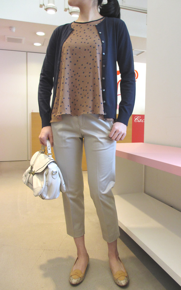 ・カーディガン(JOHN SMEDLEY) ¥30450 ・パンプス(PELLICO) ¥42000 ・バック(Waterlily) ¥24150