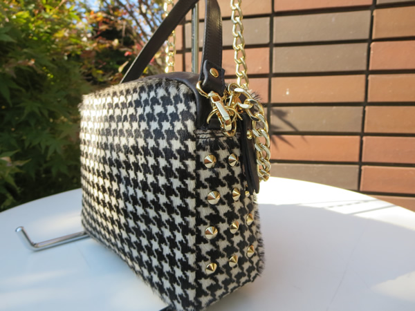 サイドには、さりげなく鋲が、輝いています。千鳥格子柄と鋲の組み合わせ、お洒落ですよね。