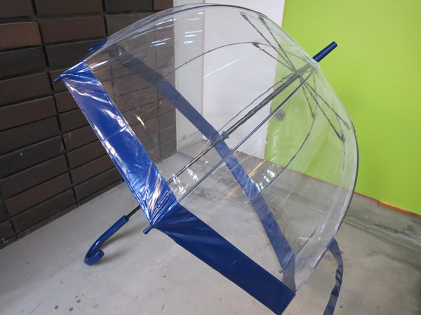 こちらも【バードケージ】のシンプルなクリア×ネイビーカラー。持ち手は、ネイビー。透明部分が多いので、歩く時も安全ですね。