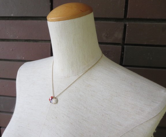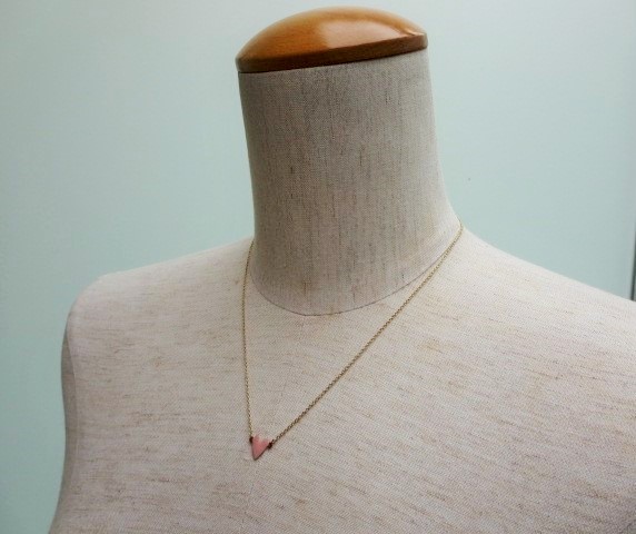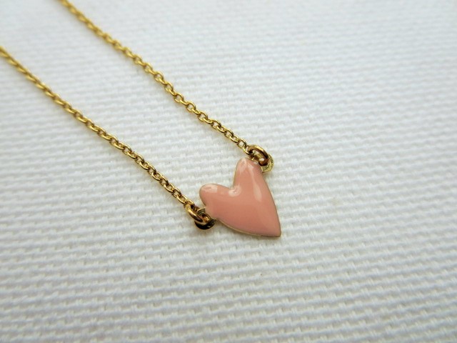 エナメル加工されたハートのネックレスは、8日のブログでご紹介したバングル&リングと同じシリーズになります。控えめな大きさなので、さり気なく付けて頂けます。