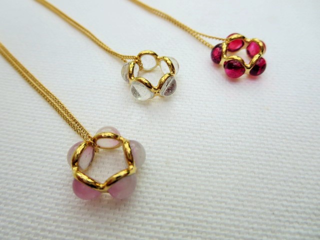 MODEL:ネックレス(左から、ピンク、クリア、レッド)