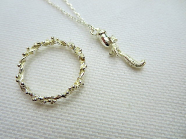 こちらをデザインをしたのは、日本人の方。いつも自然をテーマにした作品が多いのが特徴です。今回のテーマは、【どんぐりとリス】。よ〜く見て頂くと、リスがどんぐりにしがみついているような...。リングには、リスはいませんが、木の実のモチーフ。華奢なのですが、存在感バッチリ!アンティーク風な雰囲気が、素敵です。