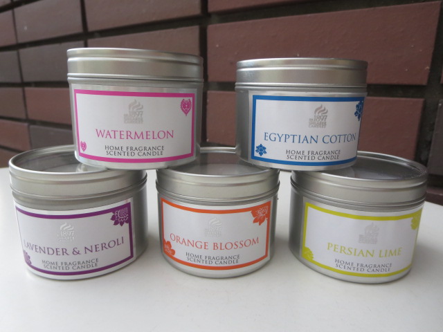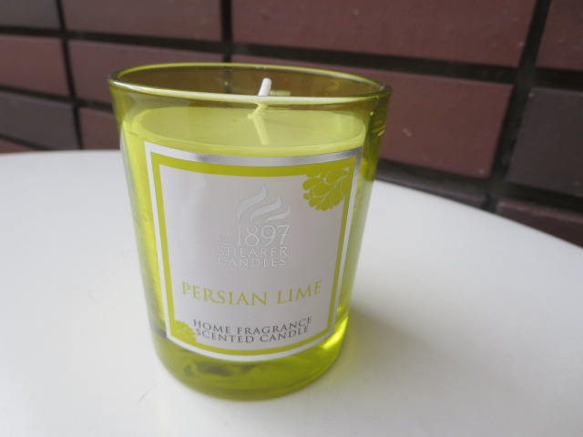 こちらは、【PERSIAN LIME】のグラス入りキャンドル。展示会で一番のお気に入りの香りを大き目サイズでオーダーしました!小さく見えますが、上の缶より大きいキャンドルとなります。おススメの香りです!