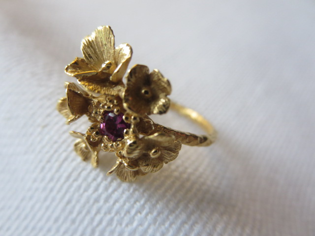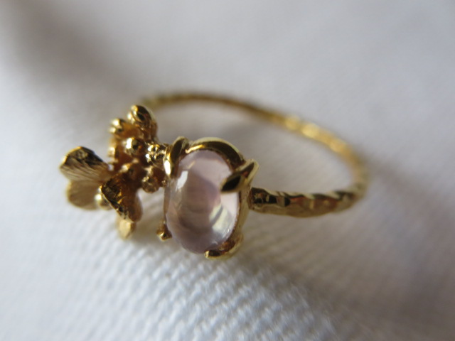 こちらは、紫陽花とピンククォーツのリング。柔らかなピンク色が、春らしく、やっぱり素敵。