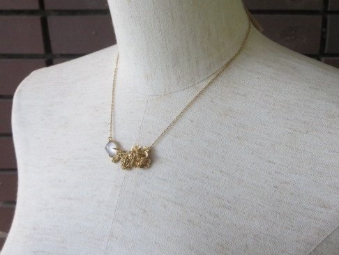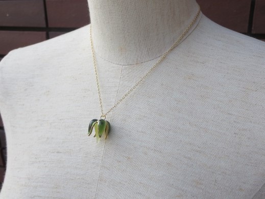 こちらもヴェネチアンガラスで、「お花の蕾」をデザインしたネックレス。胸元で動く度に、揺らめいて素敵なカンジ。ガラスの繊細な雰囲気と光によって表情が豊かに変わるのも良いですね。