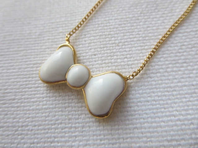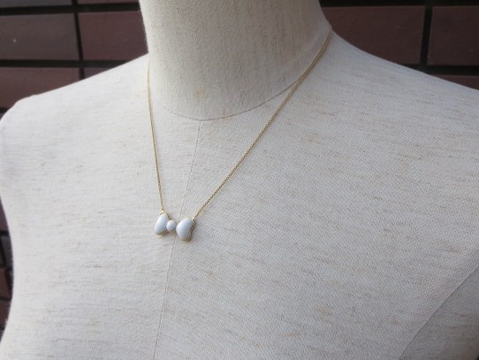 マットなホワイト色のヴェネチアンガラスで作られたリボンネックレス。ゴールドとの相性も良く、上品で、大人可愛い雰囲気に仕上がっています。