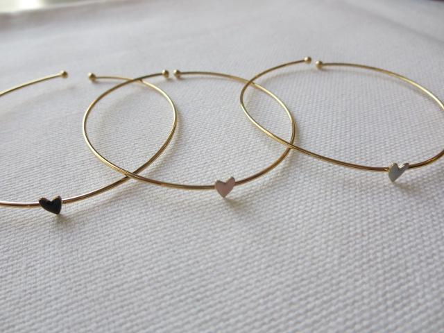 エナメル加工されたハートのバングルは、昨年好評につき今回もセレクトしました!華奢なバングルにチョコンと小さなハートが、なんだか愛らしいカンジ。重ね付けすると、良いカンジです。色は、3色。