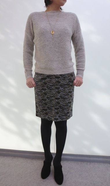 ・タートルニット(JOHN SMEDLEY) ¥29500+税 ・スカート(Harriss) ¥17000+税 ・ネックレス(CHANCE ) ¥16000+税 ・パンプス(PELLICO) ¥39000+税