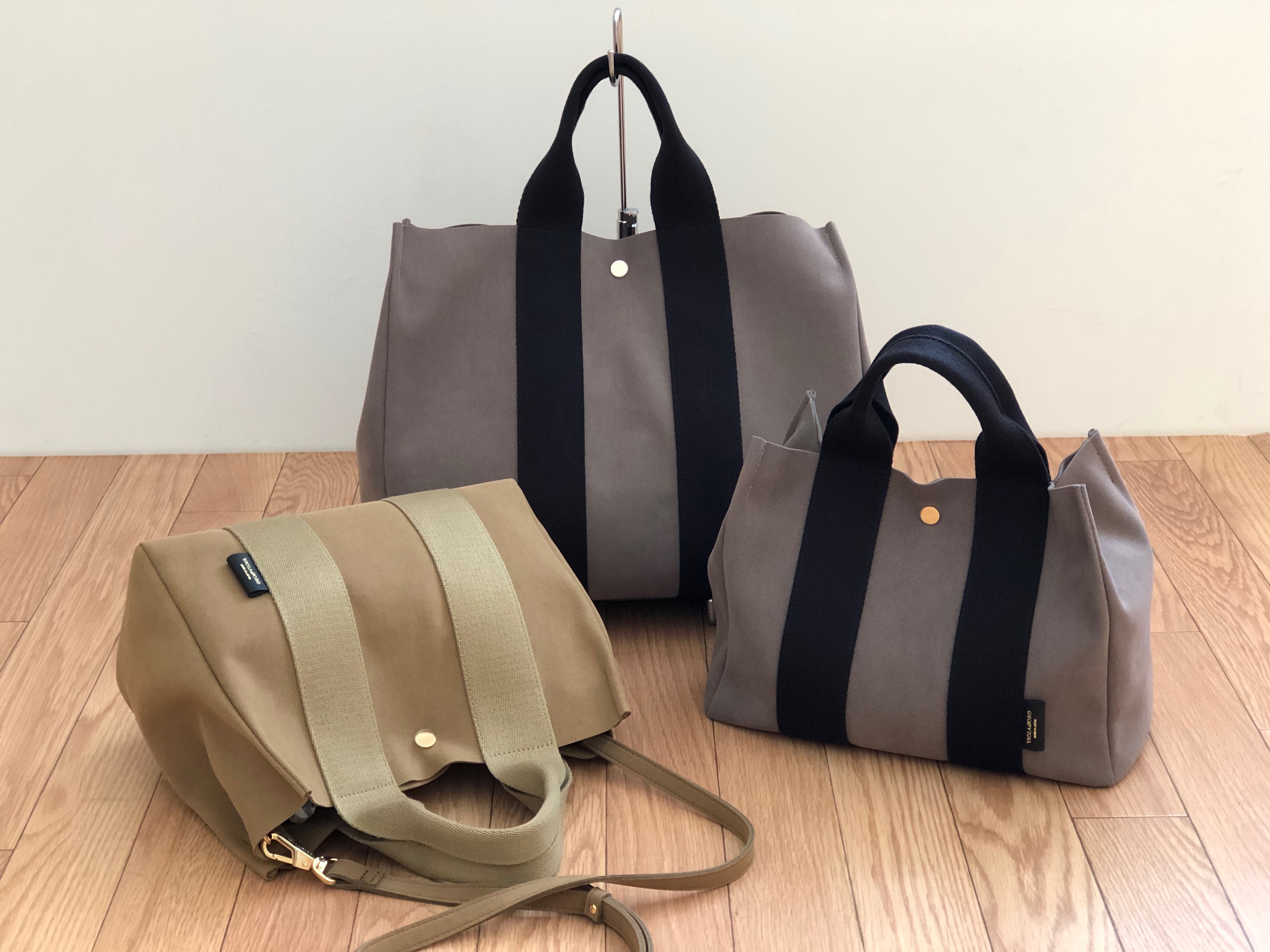 バックの定番でもあるトート。VIOLA'dOROのトートはマイクロファイバースエード素材。天然皮革のスエードと変わらない手触りと質感を保ちながらも、傷みが目立ちにくくお手入れもしやすく、丈夫で汚れも落ちやすいのが最大の魅力です。