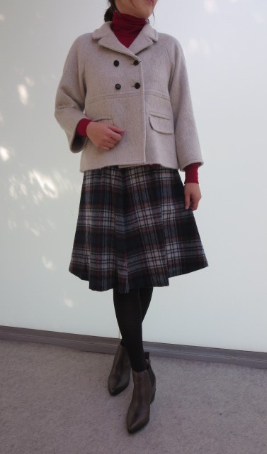 ・ニット(JOHN SMEDLEY) ¥29500+税 ・スカート(Harriss) ¥18000+税 ・ブーツ(PELLICO sunny) ¥46000+税
