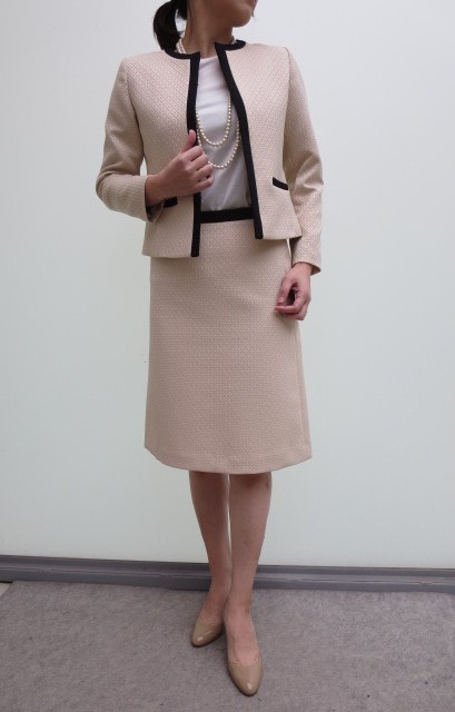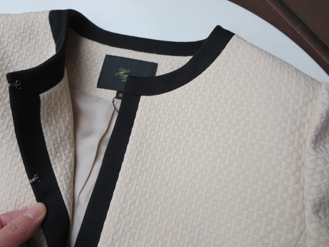 "Harriss"から卒業式や入学式などのオケージョンにも対応出来そうなセットアップが入荷しました!ブラックの縁取りがポイントの好印象のジャケット&スカート。表情のある織り地が、素敵です。ジャケットは、デニム合わせでドレスダウンしたり、ワンピースに羽織ったり幅広くお使い頂けます。