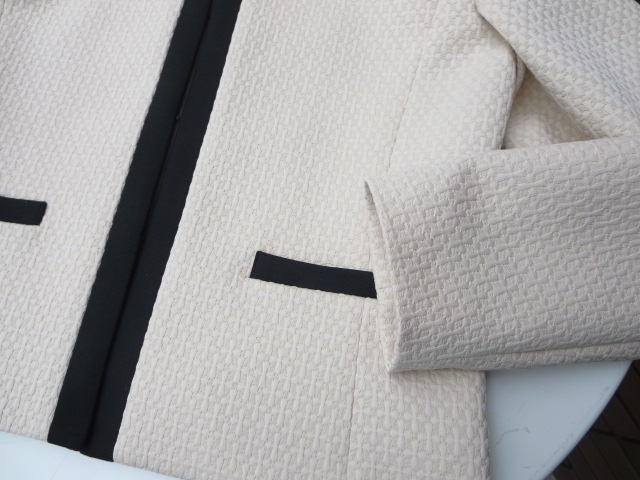 ザックリと編みこまれたジャーガード織りの春らしいセットアップ、入荷しました!襟回り、裾、袖口は、カットオフされ、フリンジが華やかな印象です。この季節何かとあるイベントやパーティーなど華やかな場にも重宝します。ジャケットは、裏地のない一枚仕立てなので、気軽にサッと羽織って頂けます。それぞれ単品で使えば、普段の着こなしをワンランクアップしてくれそうですね。(因みに昨日のコーディネイトにもスカートを使いました。)