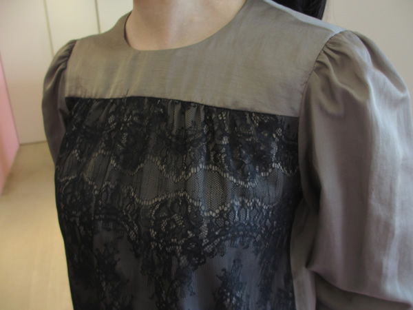 こちらは、繊細なレース使いが素敵なブラウス。袖付けの部分にはギャザー、袖口には、ゴムが入って可愛らしい印象です。