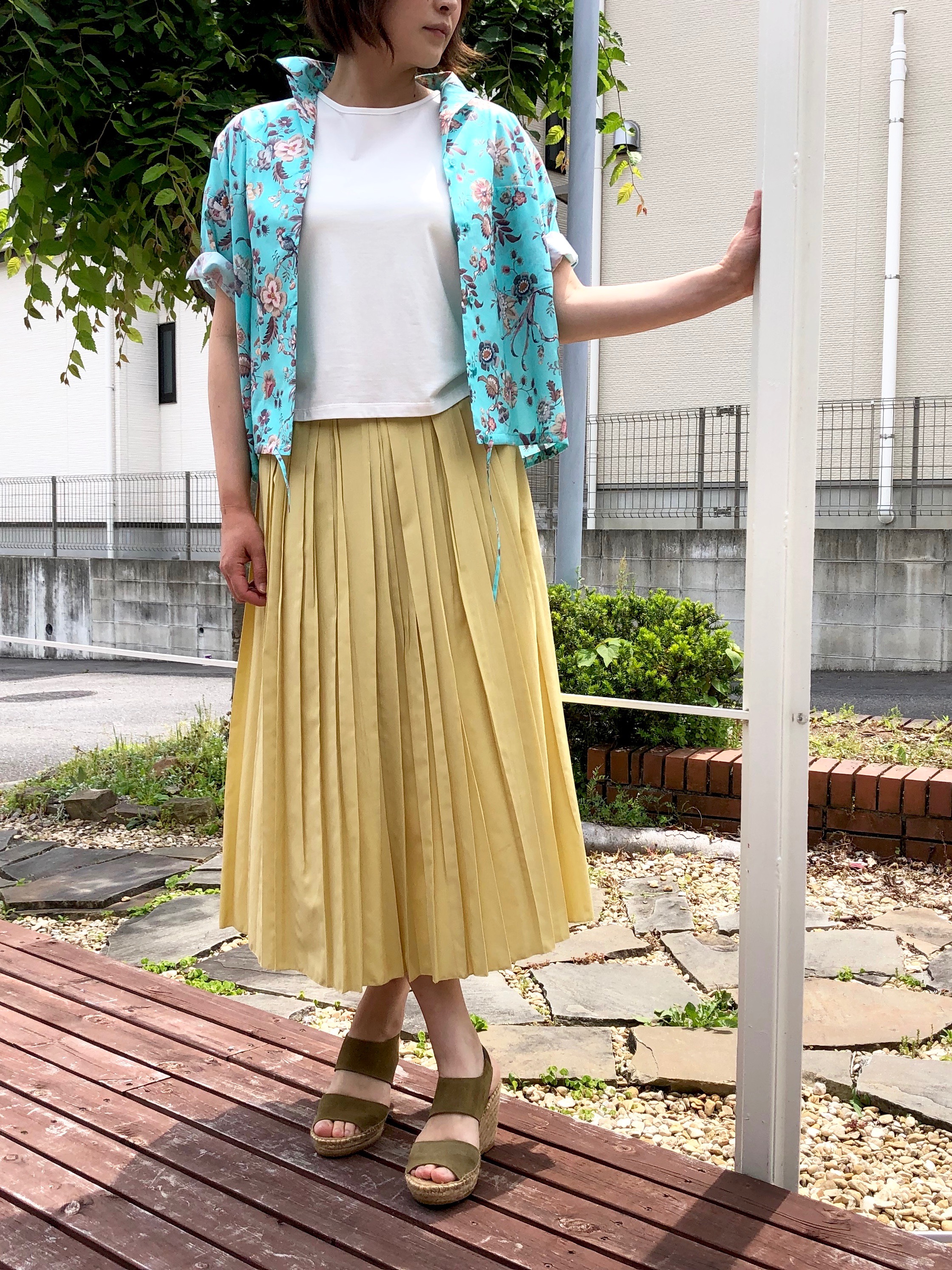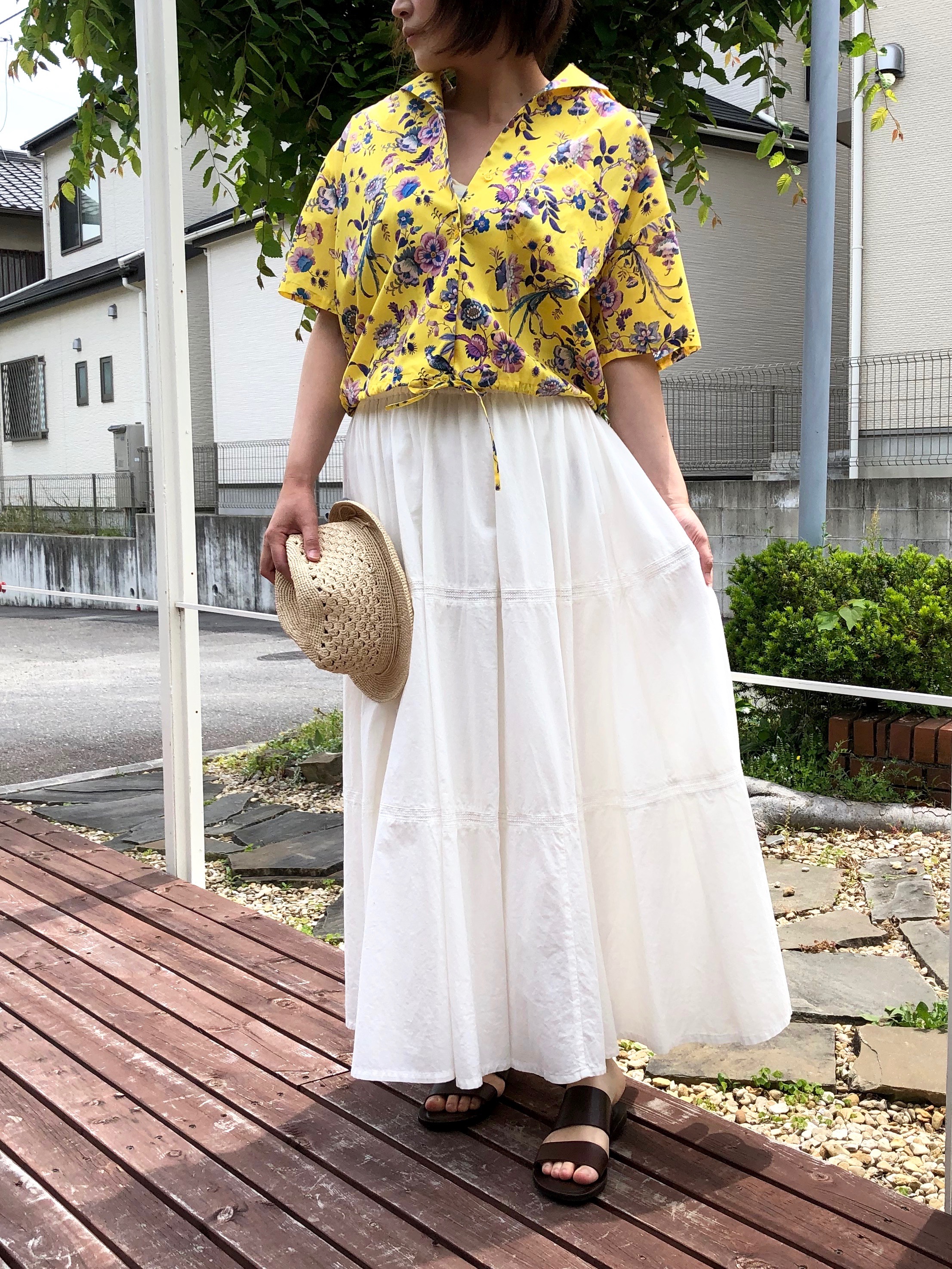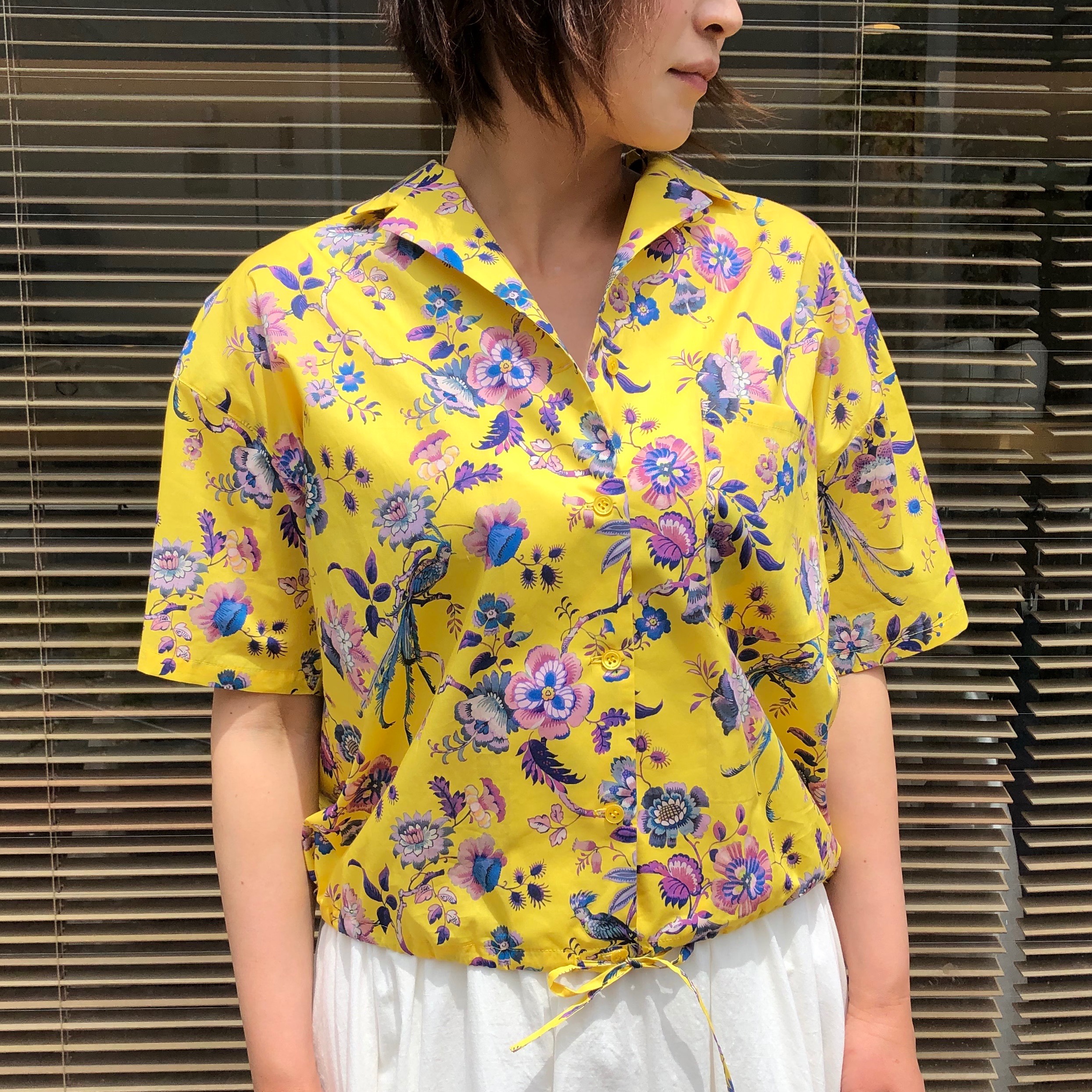 今回は、リバティ生地を使ったアロハシャツが登場です!ベースの色が鮮やかな黄色で、着ているだけで気分が上がります。
