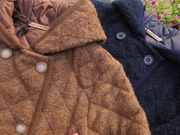 こちらもネップのウール生地で仕立てられたフードキルティングコート。ダブルボタンとショート丈で軽快に大人可愛く、使い勝手も良さそうな印象ですね。こちらは、キャメル、ネイビーの2色展開です。