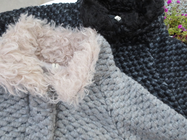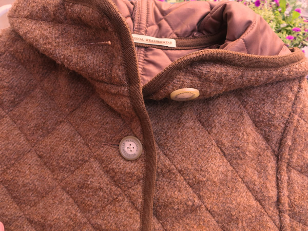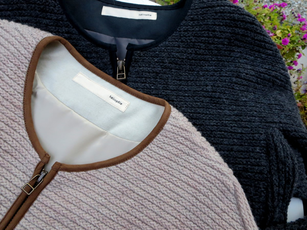 ポコポコッとした表情がなんとも可愛らしい、インポートのジャージィ素材で仕立てたショートブルゾンコート。衿裏には、これまた可愛いふわふわの別布を使い、チラッと覗かせてポイントにしてあります。こちらも軽~い着心地が◎です。