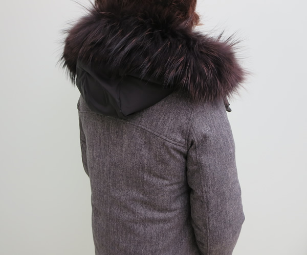 (中綿)ダウン90%、フェザー10%、(革部)牛革、(ファー)ポーランドラクーン