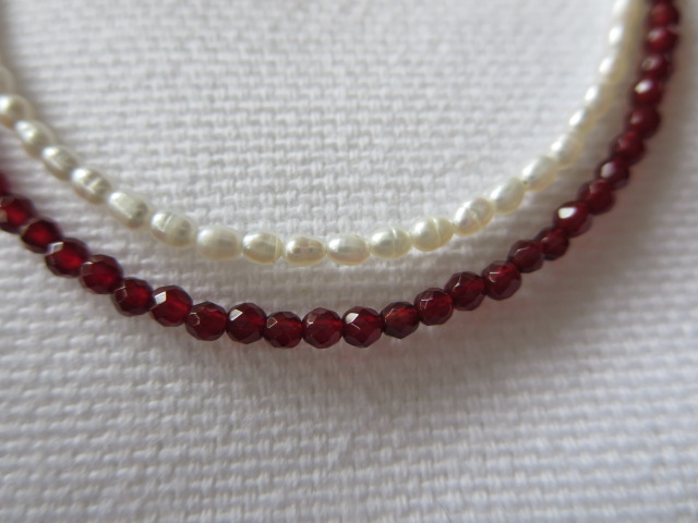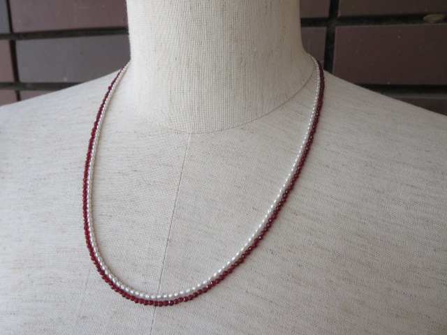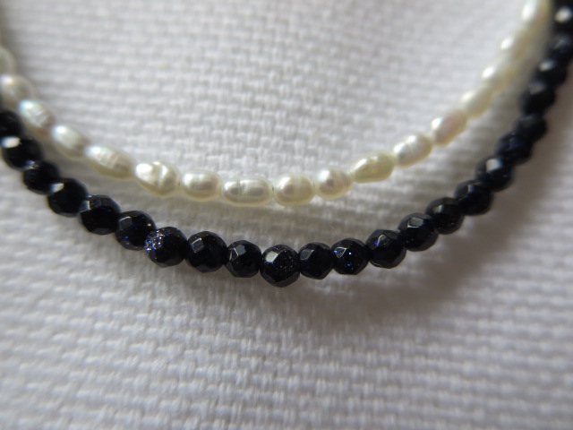 淡水パール&天然石の組み合わせで、さりげなくつけて頂ける華奢な雰囲気の2連ネックレス。淡水パールと天然石のアジャスター部分を取り外して頂くと、1連のロングネックレスにも変身!