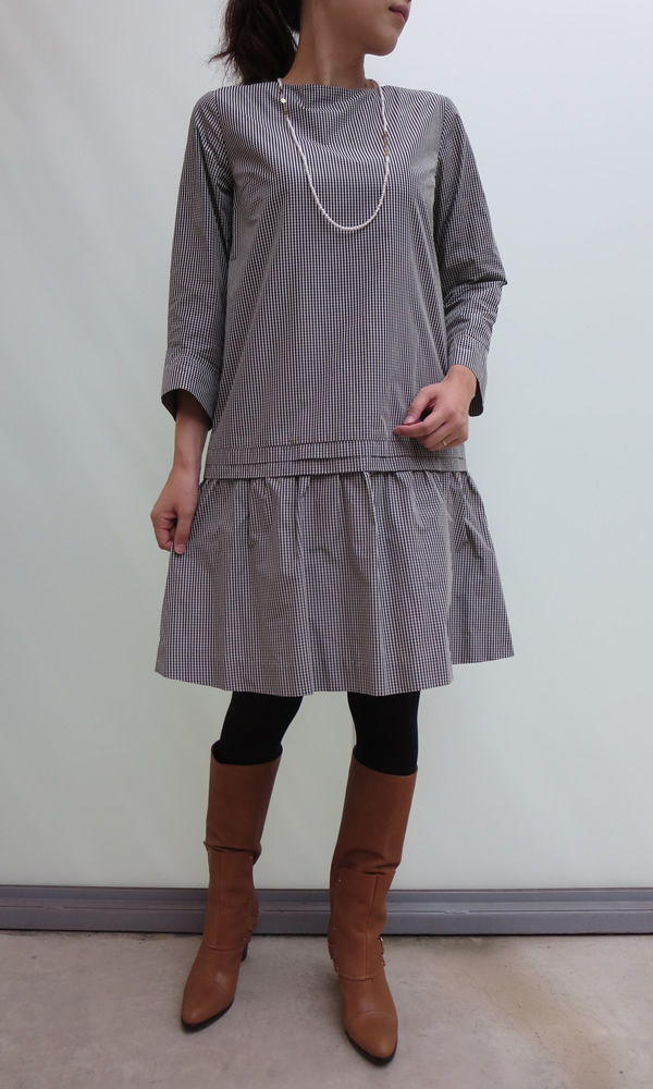 こちらは、同じ生地の形違い。ややAラインの短め丈で、重ね着もしやすくて、大活躍しそうな予感です。