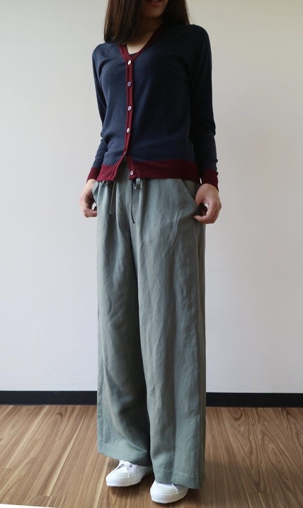 コーディネートではアンサンブルでご紹介しましたが、クルーネックニットは完売の為、今回はカーディガンのみのご用意となっております。