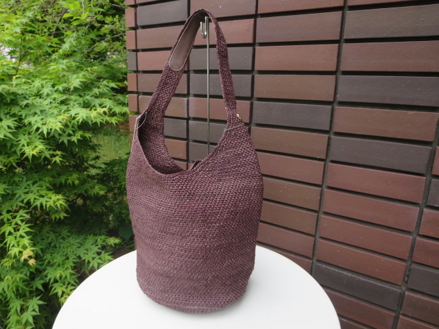 上質なマダガスカル産のラフィア素材を使用し、クロッシェ編みで丁寧に作られたワンショルダーバッグ。ショルダーの肩の部分には、荷物の重さで伸びない様にレザーが貼ってあります。肩に掛けた時、バッグが身体にフィットする感じも◎。底が丸いので、案外たっぷりと荷物も入りますよ!