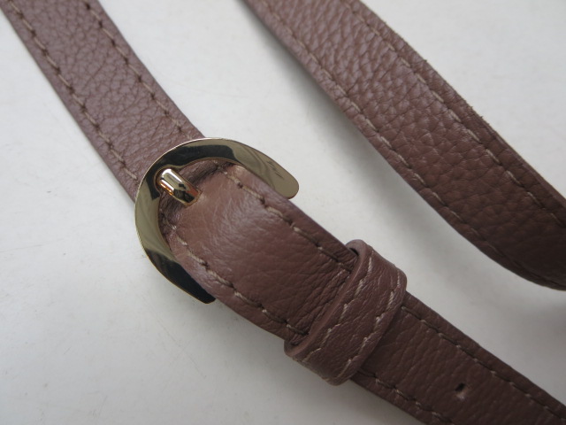 こちらは、セピア色のショルダーバッグ。コロンとした形が、何だか可愛らしくて惹かれます。長財布や携帯など、最小限のものはしっかり入りますよ。中には、ポケットが一つ付いています。