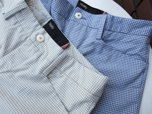 こちらも以前ご紹介しましたコーディネイトですが、ボトムは“Notify”の【Capri】というモデル。大人の雰囲気漂うギンガムチェックのパンツです。柔らかい素材感とともにストレッチも入って着心地バツグンです。
