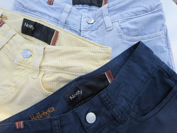 “Notify”の中でも【Hellebora Capri】という人気モデルで、しかも今年トレンドのヒッコリー柄のカラーパンツ。絶妙な色味と素材感が、カジュアルながらも上品な着こなしに仕上げてくれます。