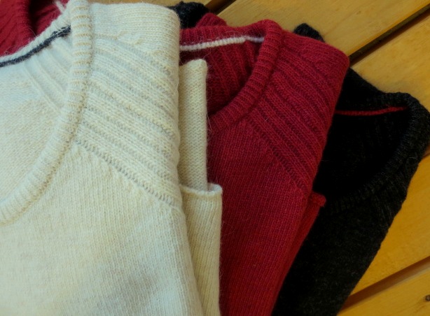 そしてライトグレイのこちらは、リブ編み部分も同色なのですっきりとした感じ。