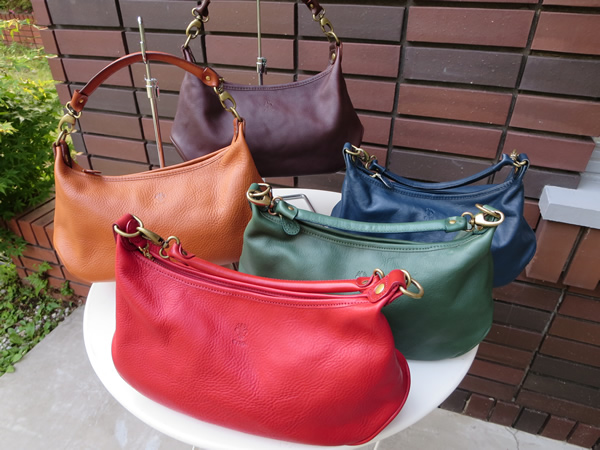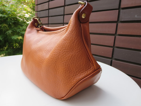 チーバの代名詞とも言える一番人気の月型バックです。使い易く2WAYになっており、手提げでもショルダーでもOKです。しっかりとなめしたヌメ革やきれいなステッチワークなど、シンプルながら丁寧に仕上げられたバックからは職人のこだわりが伝わってきます。