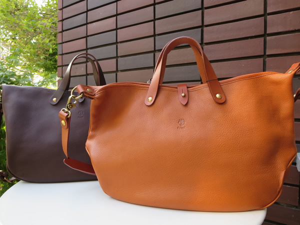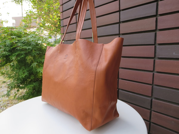こちらは、子牛の原皮を選び、トスカーナ伝統のベジタブルタンニンのなめしと手染め風のムラ感とつやを消した染色が特徴のトートバックです。使い込んでいくほどに、柔らかく馴染んで良い風合いになっていきます。
