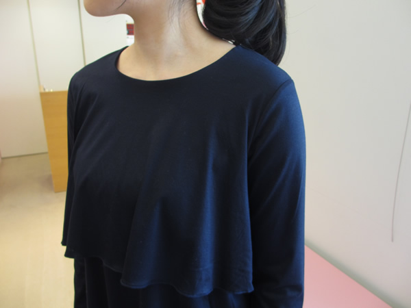 カットソーは、一枚生地が重なっていて、シンプルながら雰囲気のある一枚になっています。パンツの柄は、小花柄とジャガード柄の2柄です。