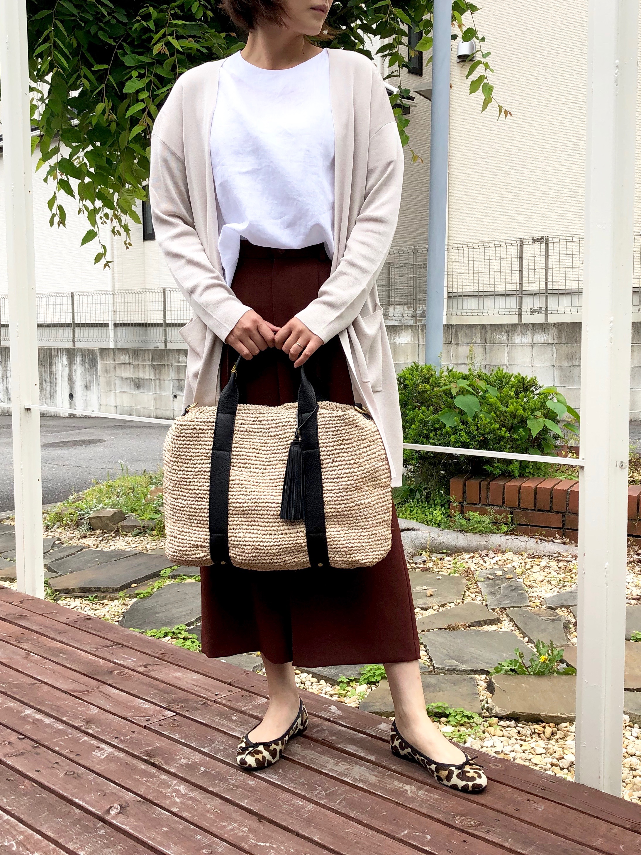 広めの裾周りがスカートに見え、女性らしいスタイルを表現できるパンツです。今回のようにカットソーを合わせるカジュアルコーデも、このパンツのおかげで上品さを漂わせます。