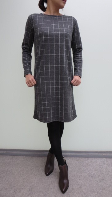 こちらは、"liriito"より入荷しましたチェック柄ワンピース。特徴は、前後の生地が切り替えられていること。前身ごろは、ウールの布帛で、後ろは伸縮性のあるジャージィ素材。とっても着心地は良く、キチンと感もあって色々なシーンで使って頂けます。