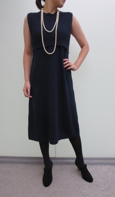柔らかで上質なウール素材で仕立てられたニットワンピース。ゲージの違うワンピースとノースリーブプルオーバーがドッキングされた重ね着風のデザインワンピースになります。ニットワンピースにありがちな体のラインを気にすることもなく、程よい落ち感が大人っぽく着こなして頂けそうです。中に薄手のタートルニットやカットソーを重ね着しても◎。
