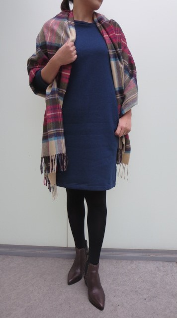"Harriss Grace"から入荷したのは、スウェット素材の楽ちんワンピース。シンプルなシルエットなので、小物でアクセントをつけると良いカンジです。中は、起毛していて暖か。重宝しそうな1枚です。