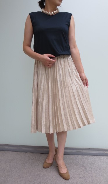 さり気ない光沢感が、上品な雰囲気のサテンプリーツスカート。裾に向かって広がる細かいプリーツが、フェミニンで、スカート丈は、安心なミモレ丈。ちょっとしたお出かけやイベントにドレスアップして、着こなしても◎。シーズンレスな生地なので、今すぐお使い頂けます!