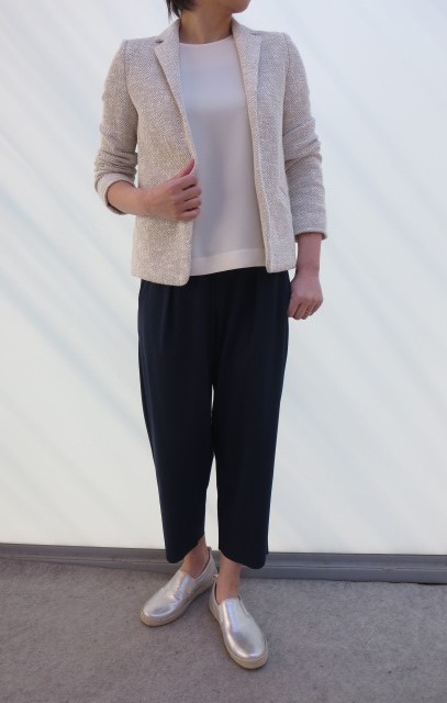 ・ブラウス(heliopole) ¥12000+税 ・シューズ(design manifattura) ¥20000+税
