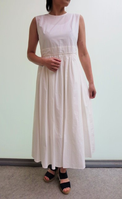 高めのウエスト位置から広がる、ボリュームたっぷりのフレアラインが美しいロング丈ワンピース。爽やかなコットン素材を使用しています。シンプルなデザインではありますが、1枚で素敵になれる雰囲気です!