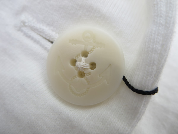 伸縮性バッチリ!ジャケットは、Tシャツの上からさらっと羽織って頂くと良い感じ。オンオフ、シーン選らばずお使いいただけますね。ボタンもマリンティストを意識したイカリマークで、ちょっと大人可愛らしく。