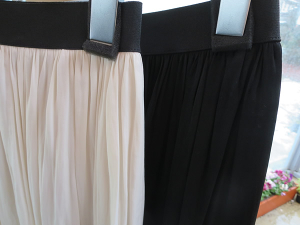 スカートは、ホワイトとブラックの2色展開。ウエストは、ゴム仕様になっているので楽ちんに穿いて頂けますよ!